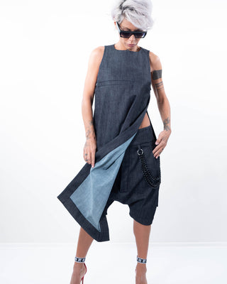 BALLOON DENIM DRESS WITH ZIPPER DETAILS