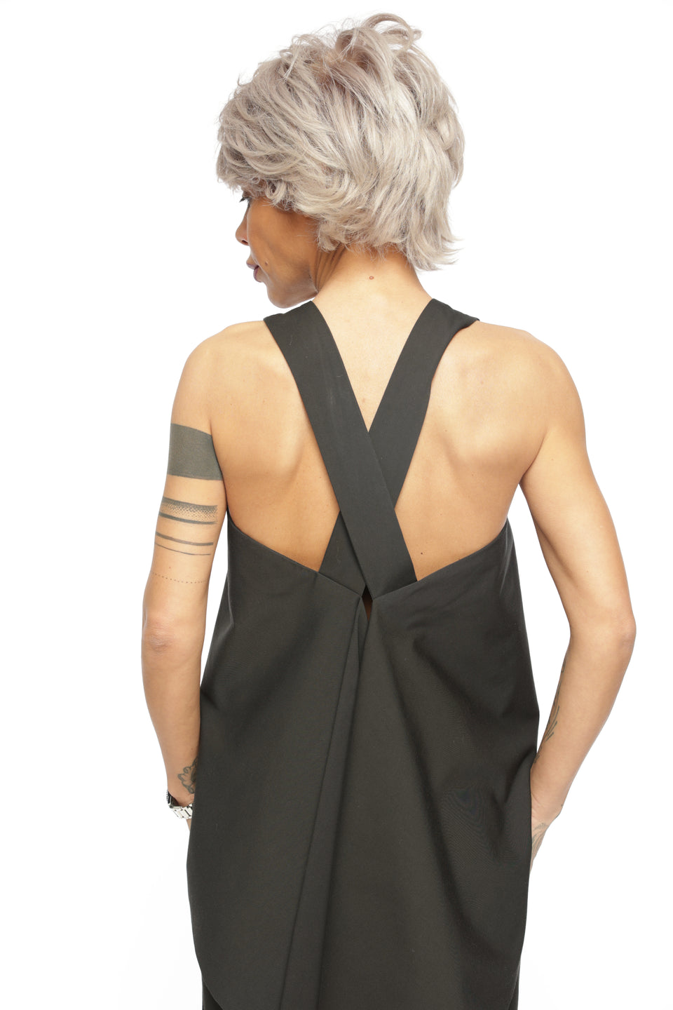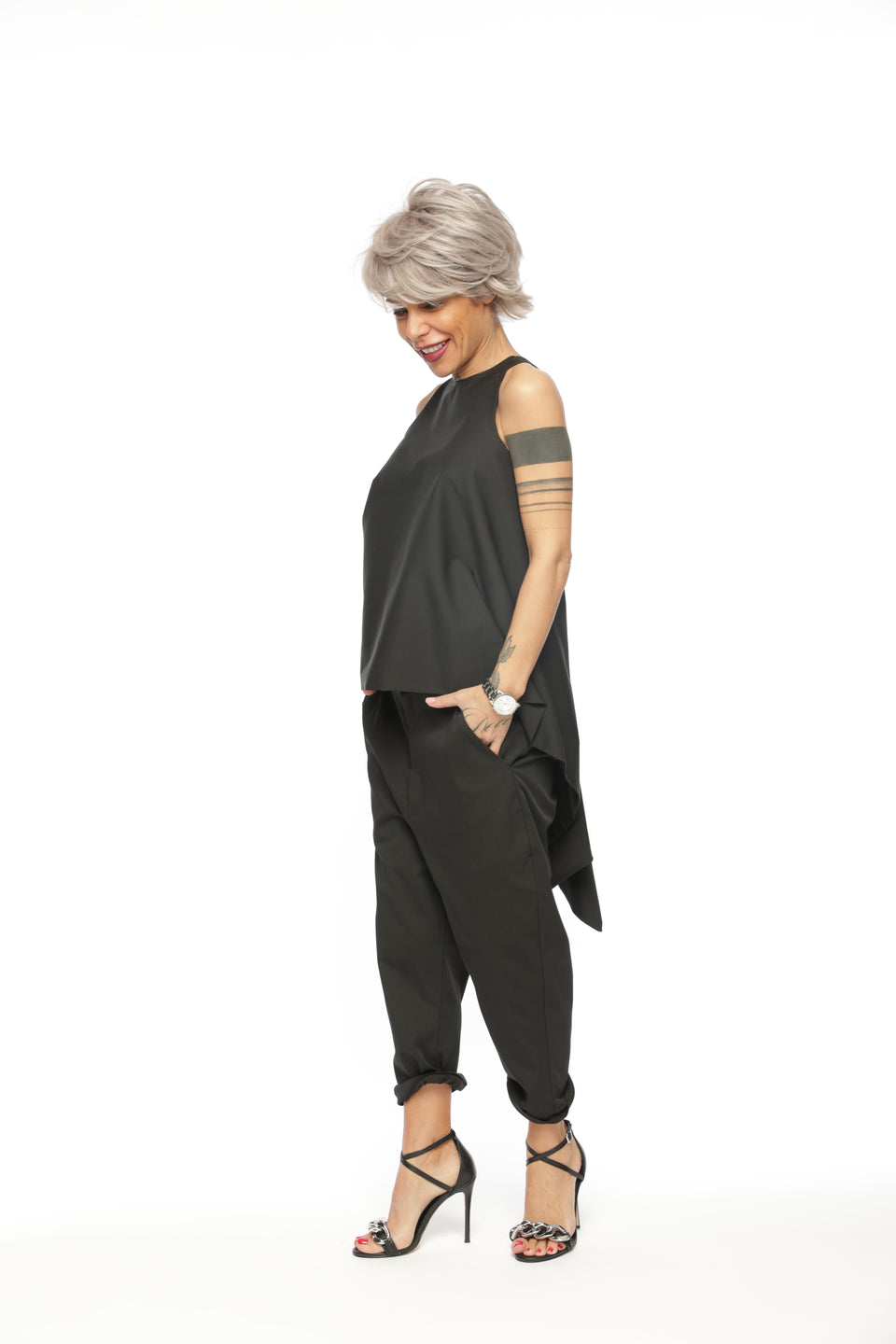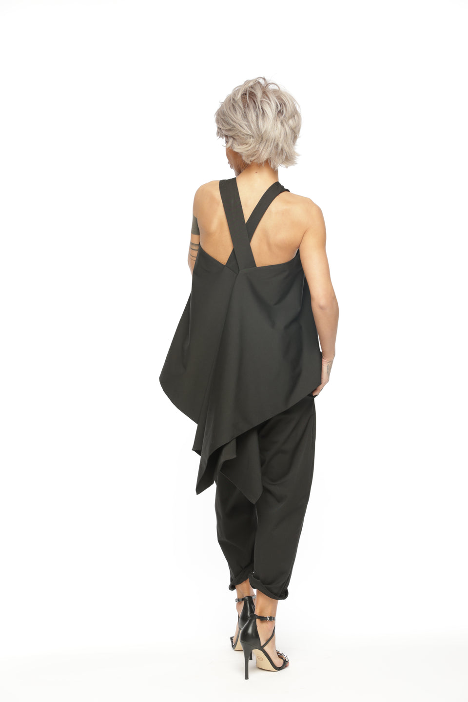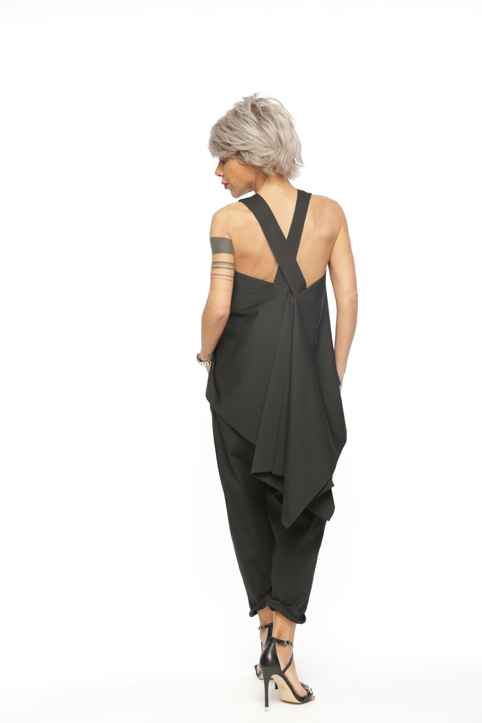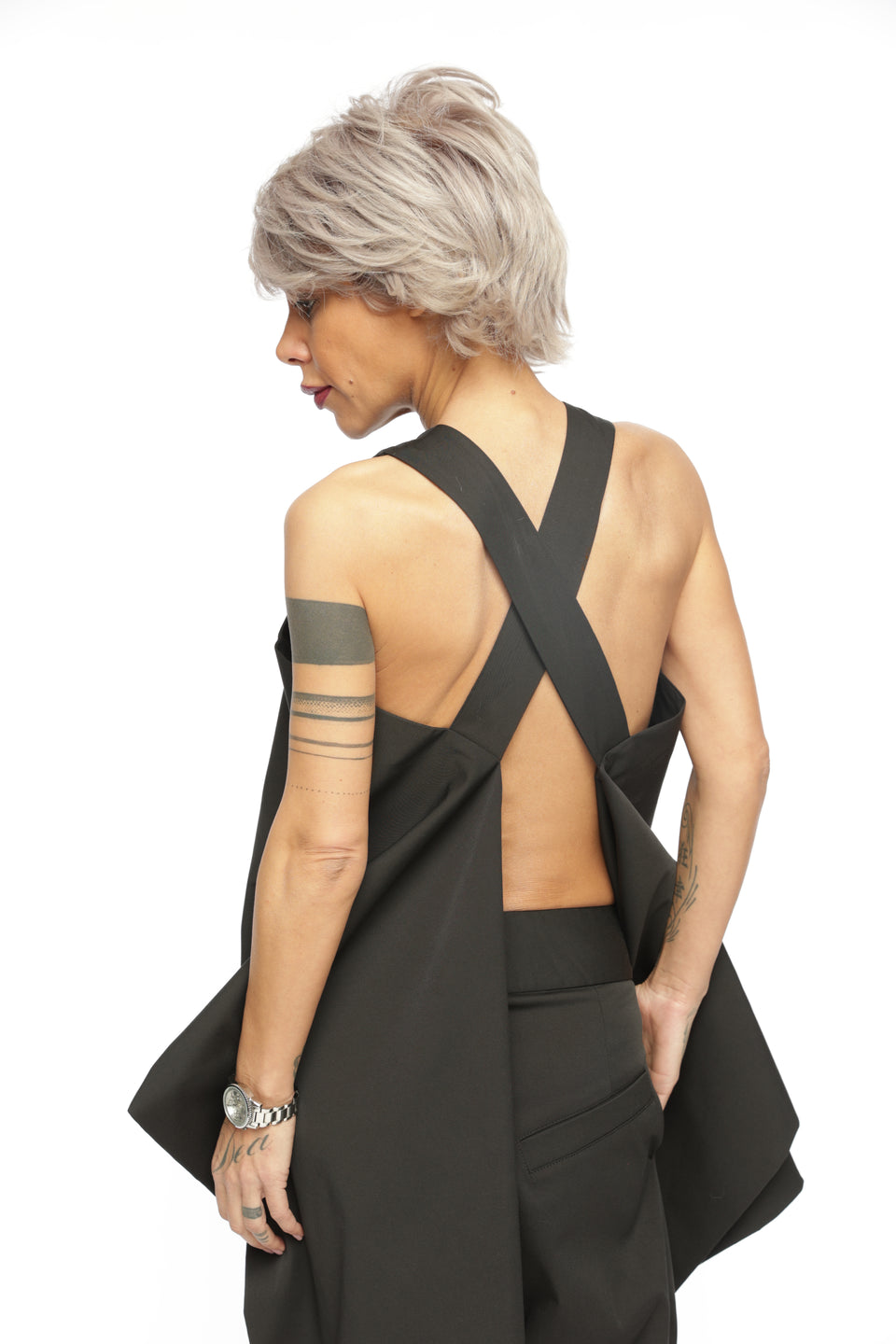 2-PIECE BOXY CRISS-CROSS BACK TIERED TOP AND RELAXED PANTS CO-ORD SET IN BLACK