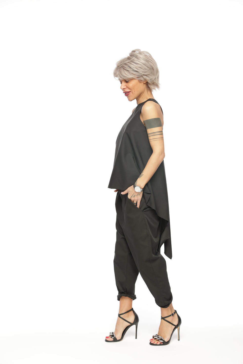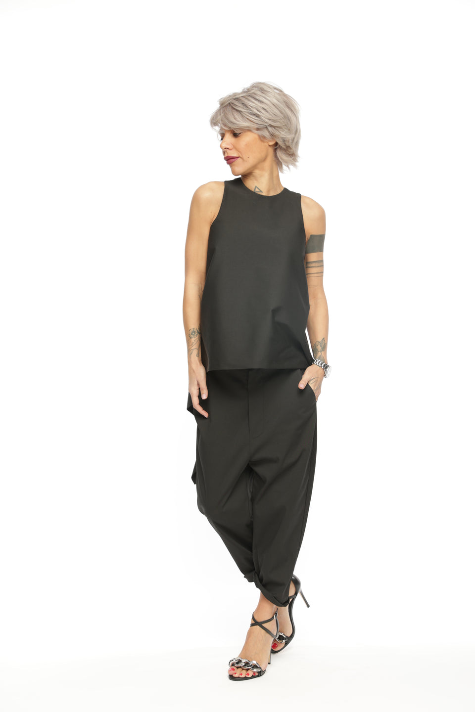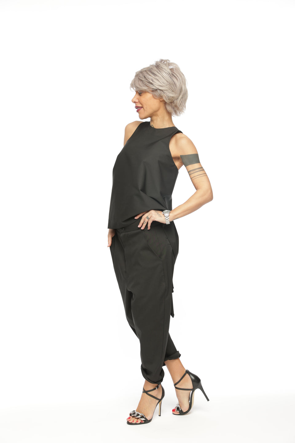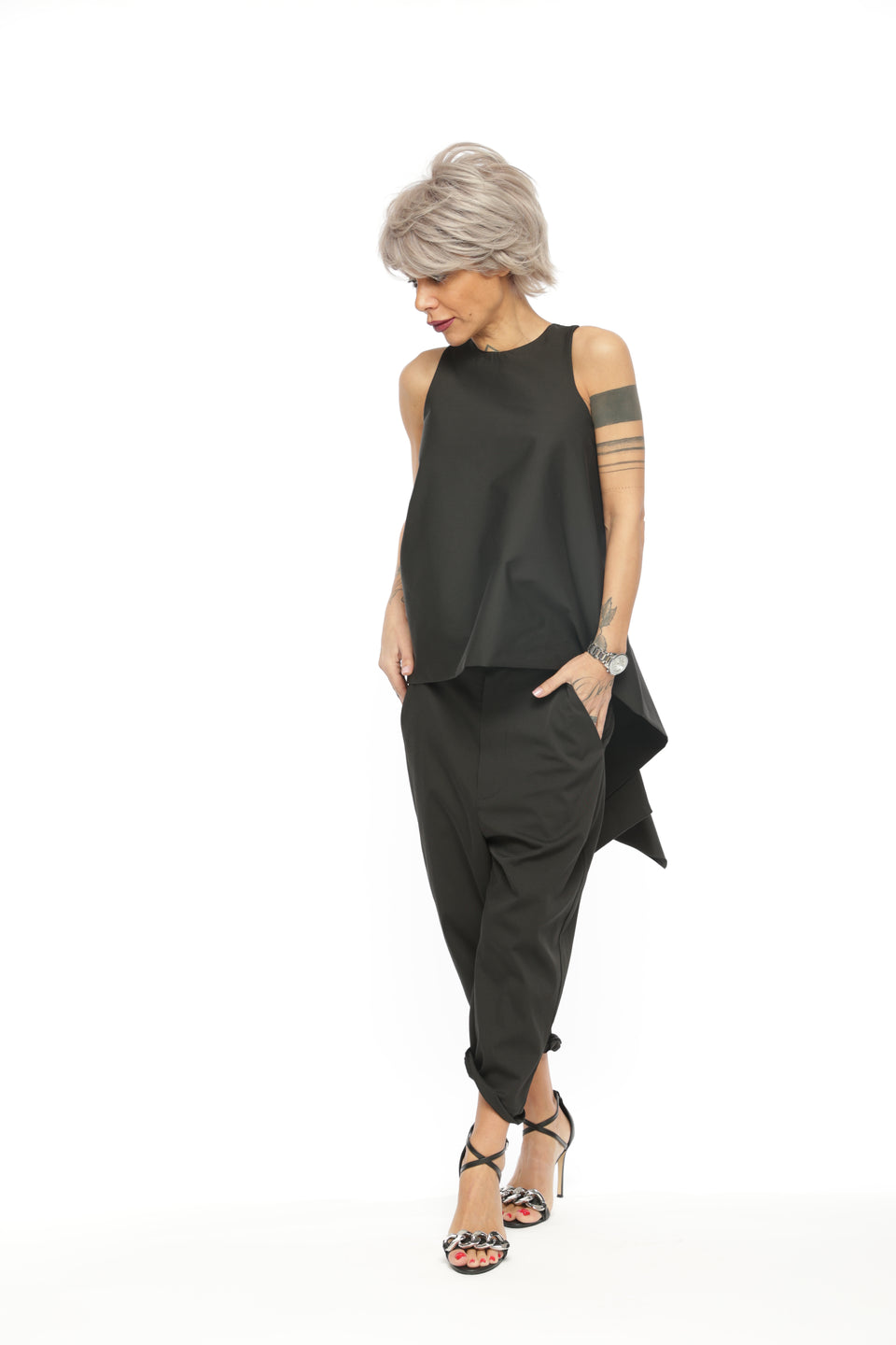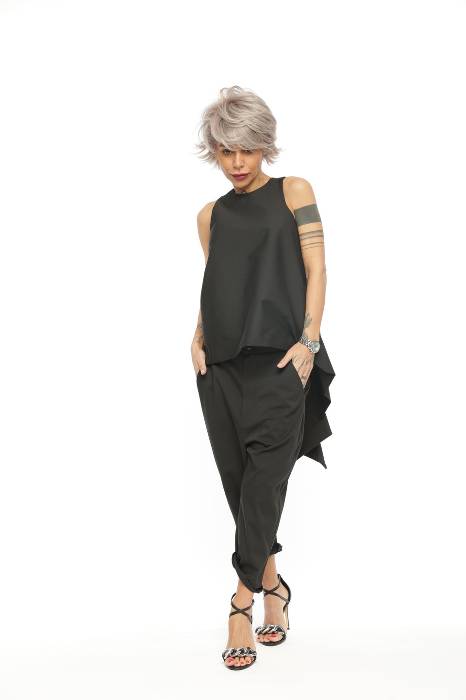 2-PIECE BOXY CRISS-CROSS BACK TIERED TOP AND RELAXED PANTS CO-ORD SET IN BLACK