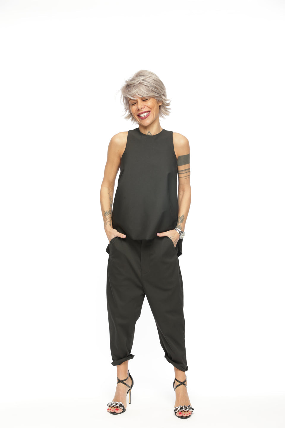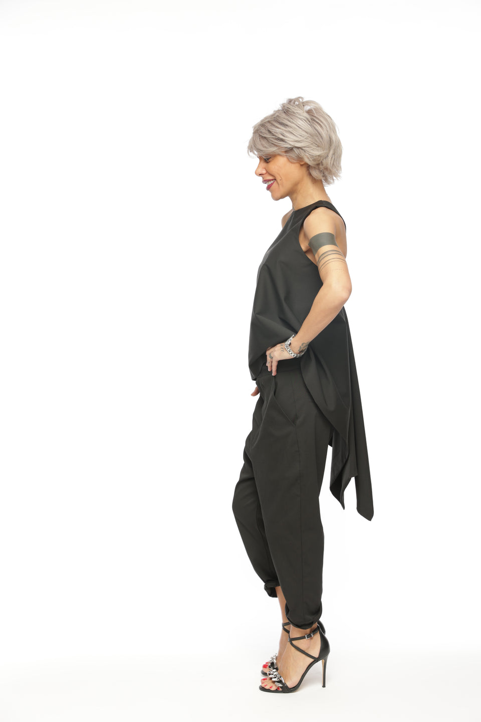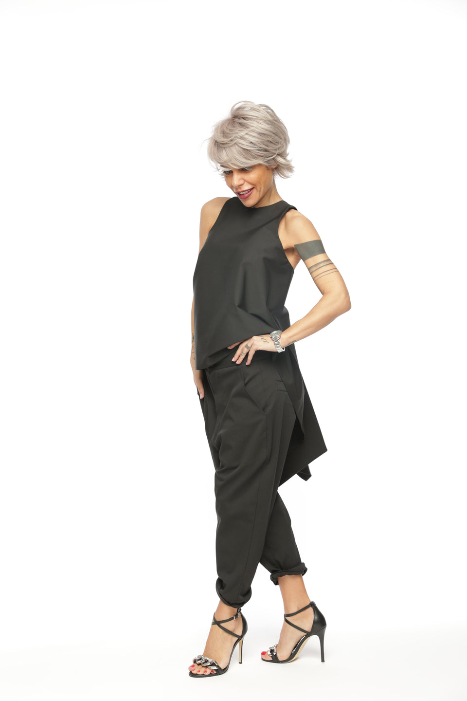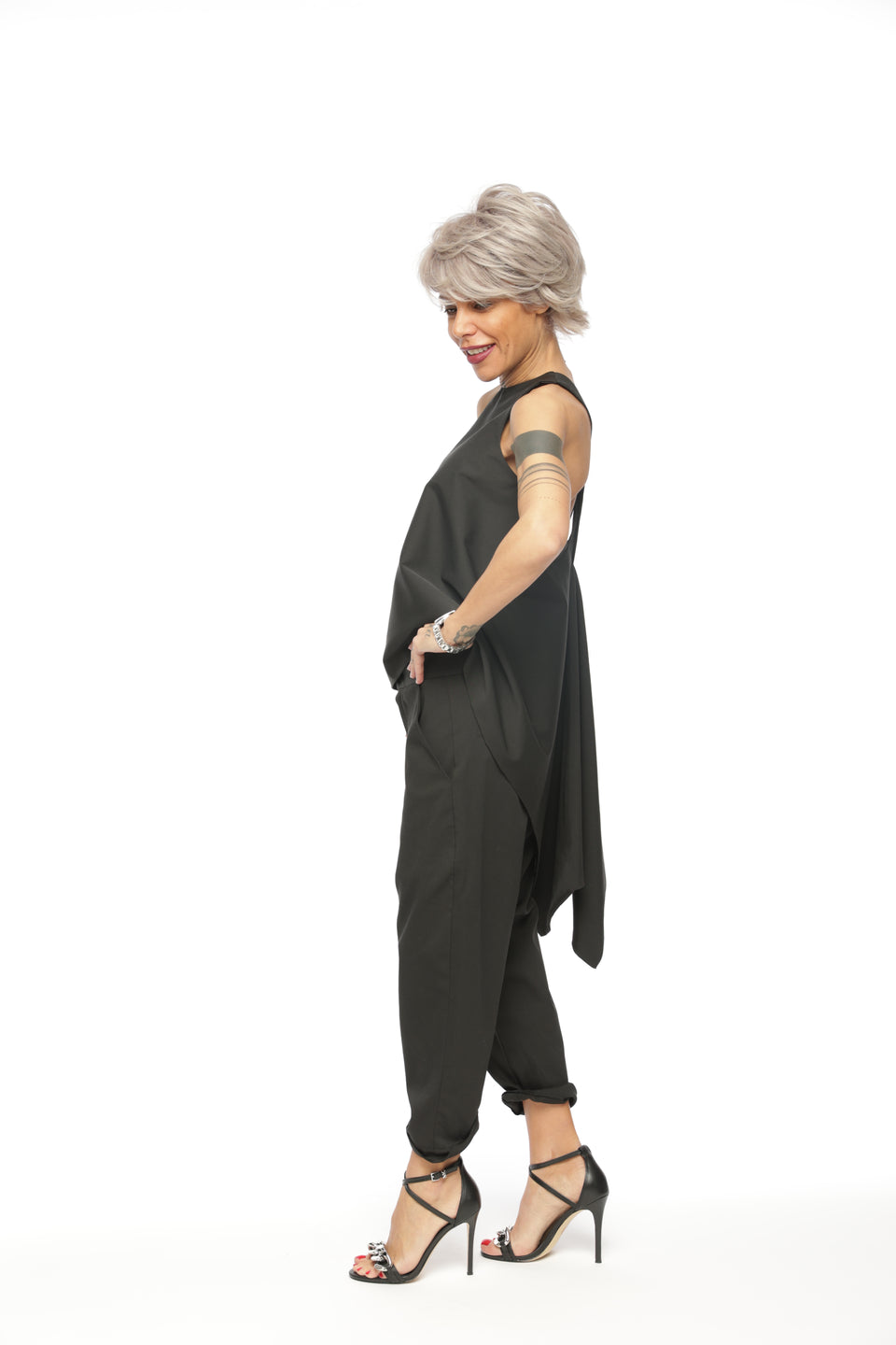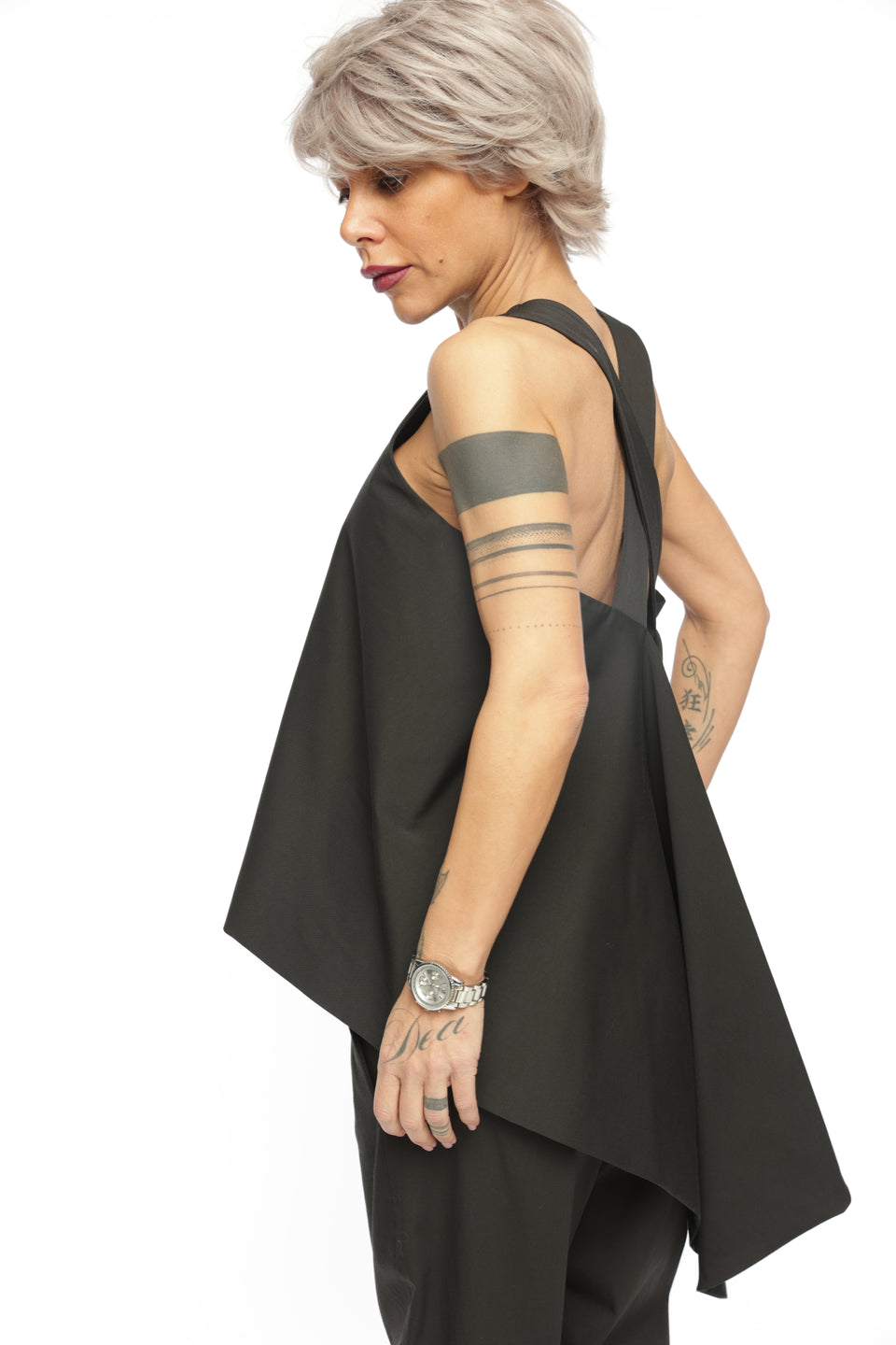 2-PIECE BOXY CRISS-CROSS BACK TIERED TOP AND RELAXED PANTS CO-ORD SET IN BLACK