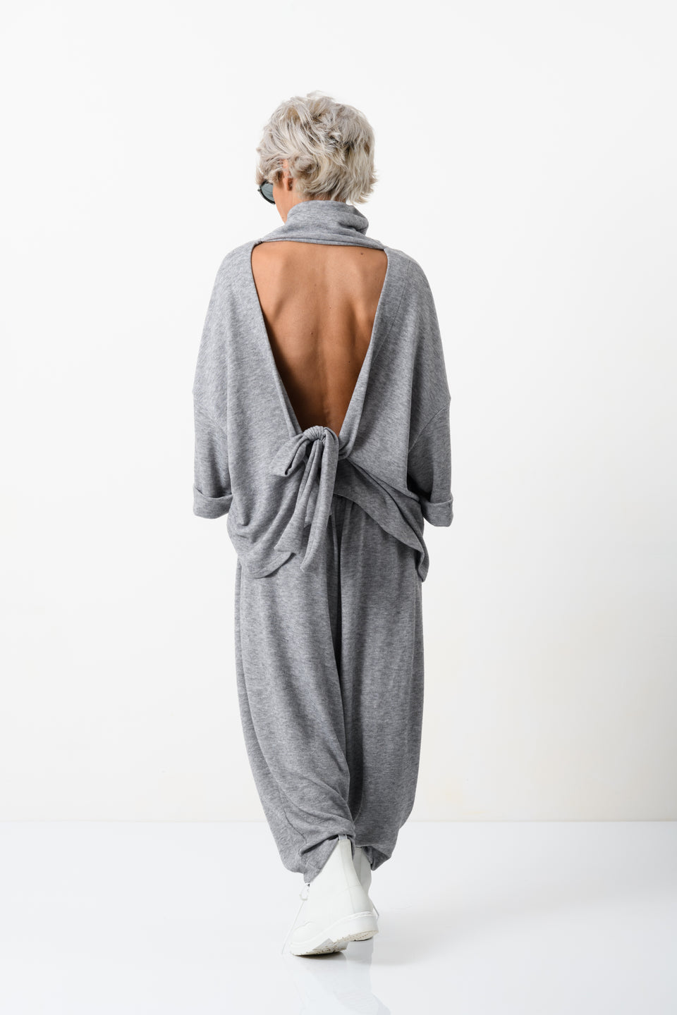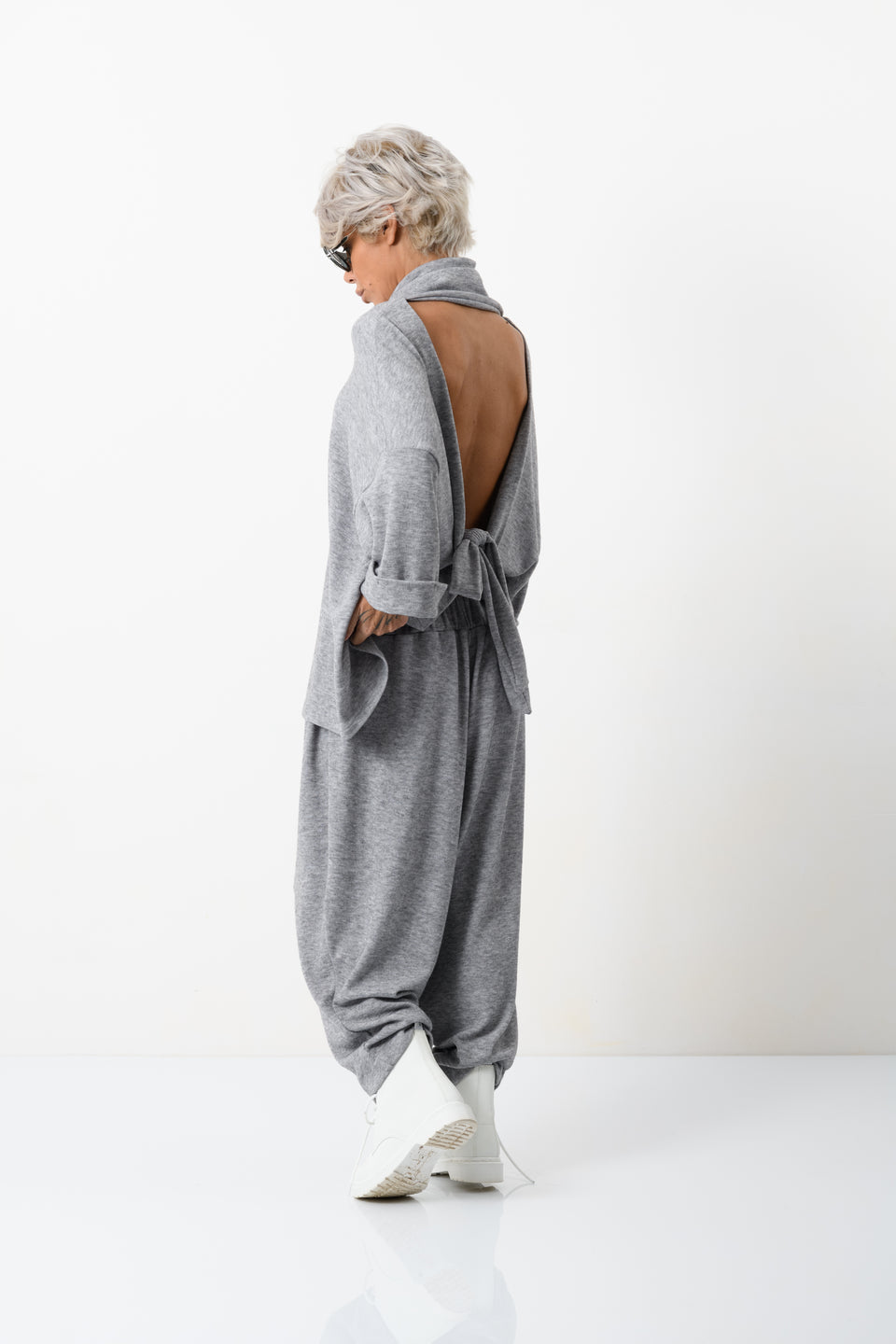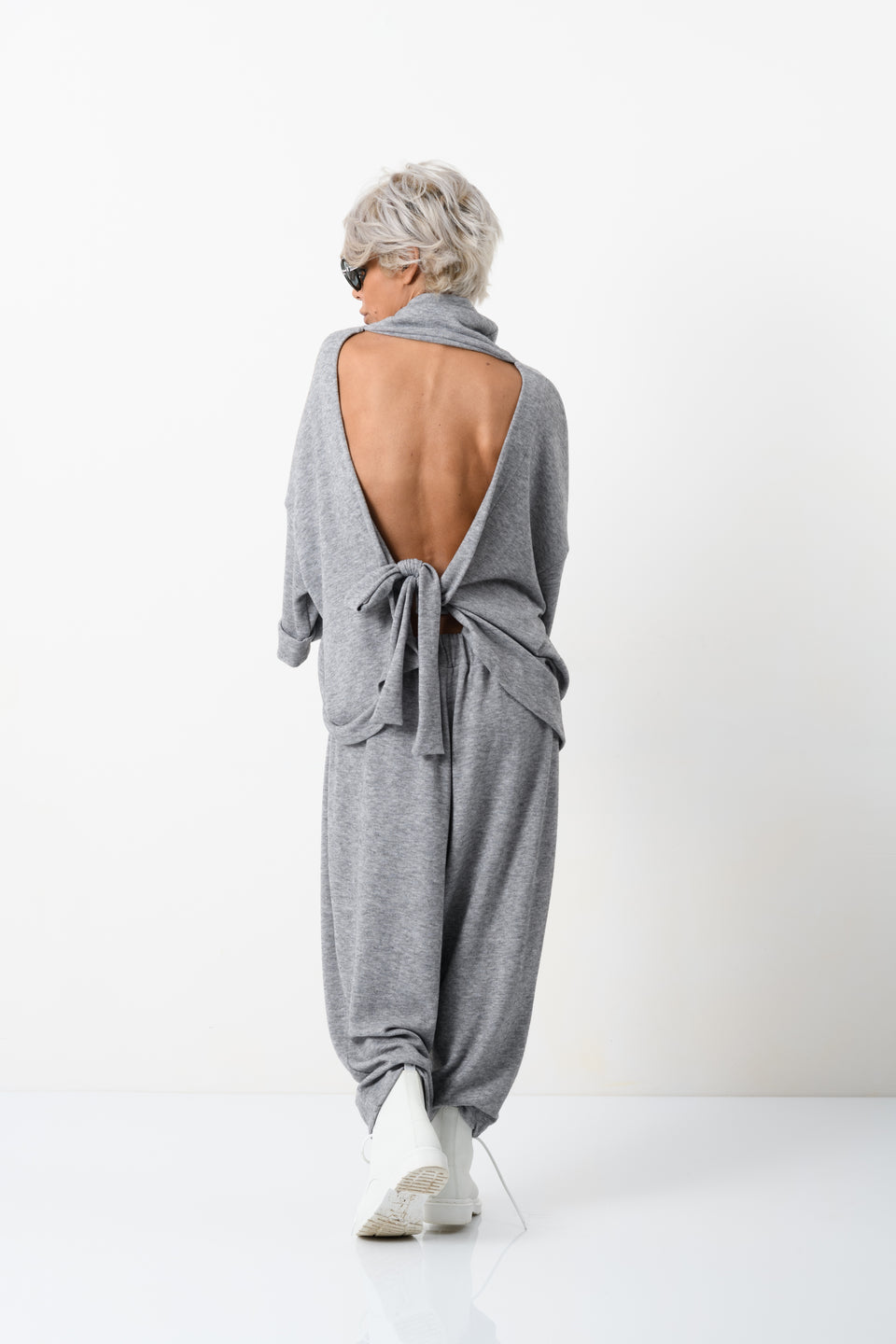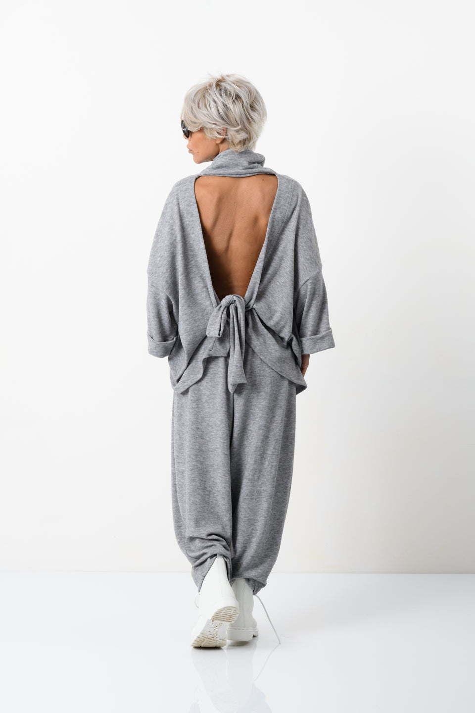 2-PIECE OPEN-BACK LOUNGEWEAR CO-ORD SET IN GREY