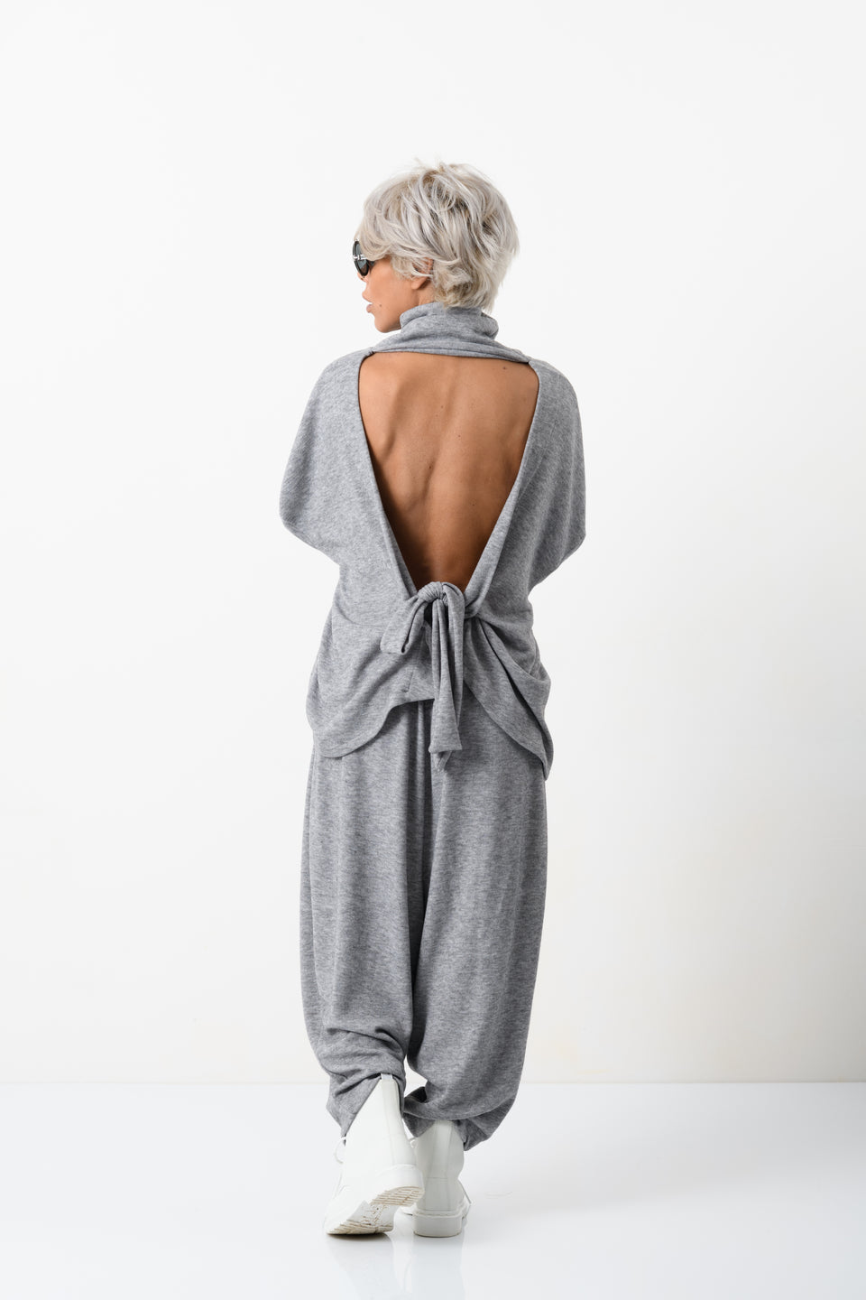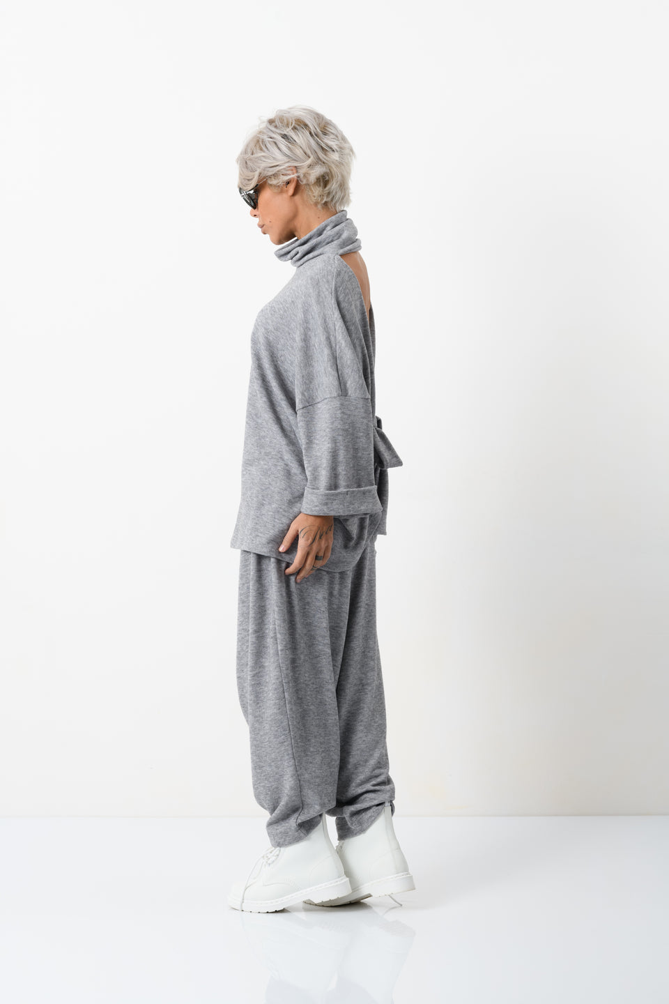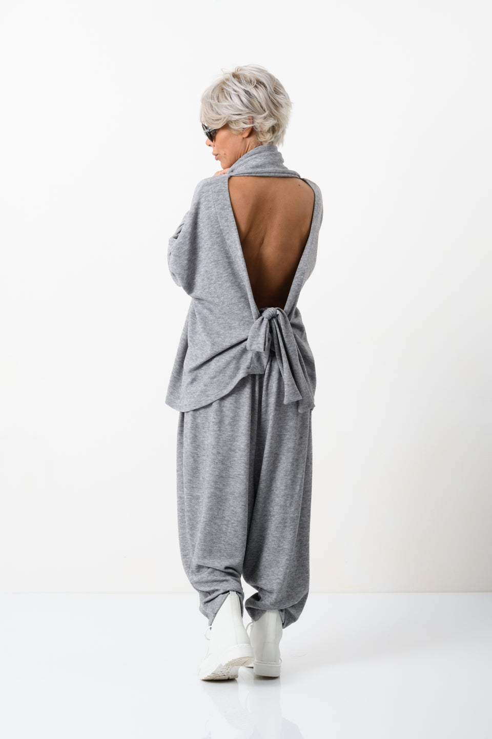 2-PIECE OPEN-BACK LOUNGEWEAR CO-ORD SET IN GREY