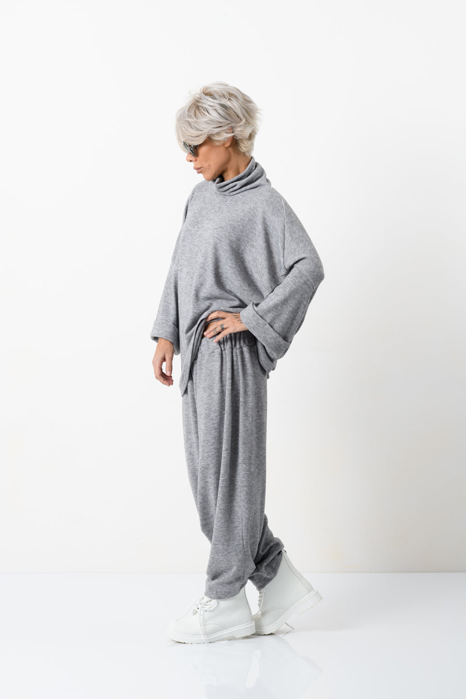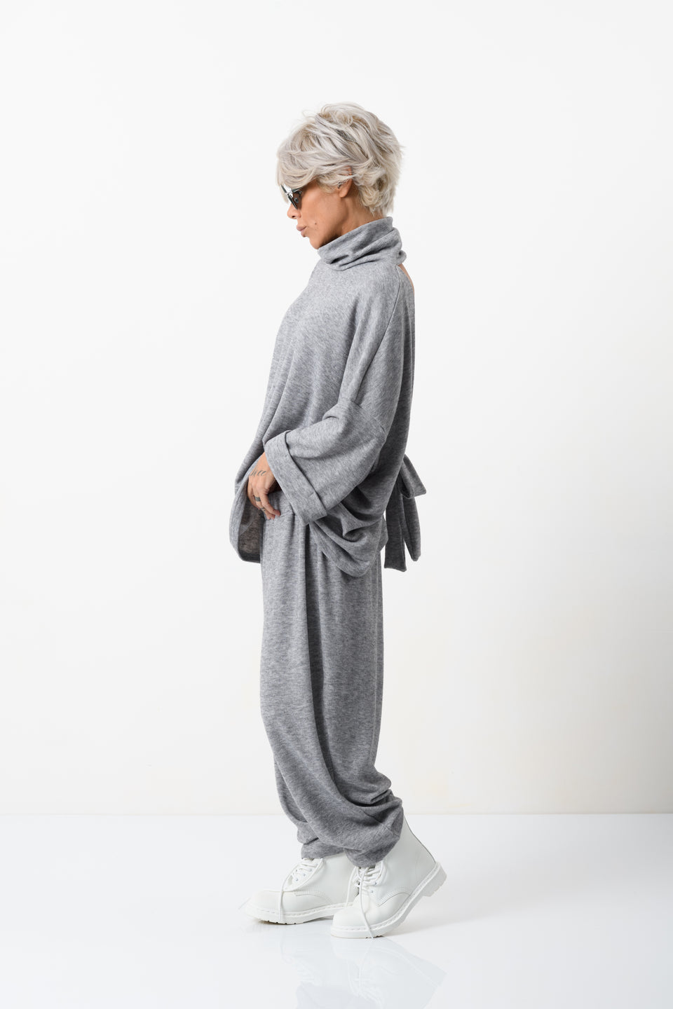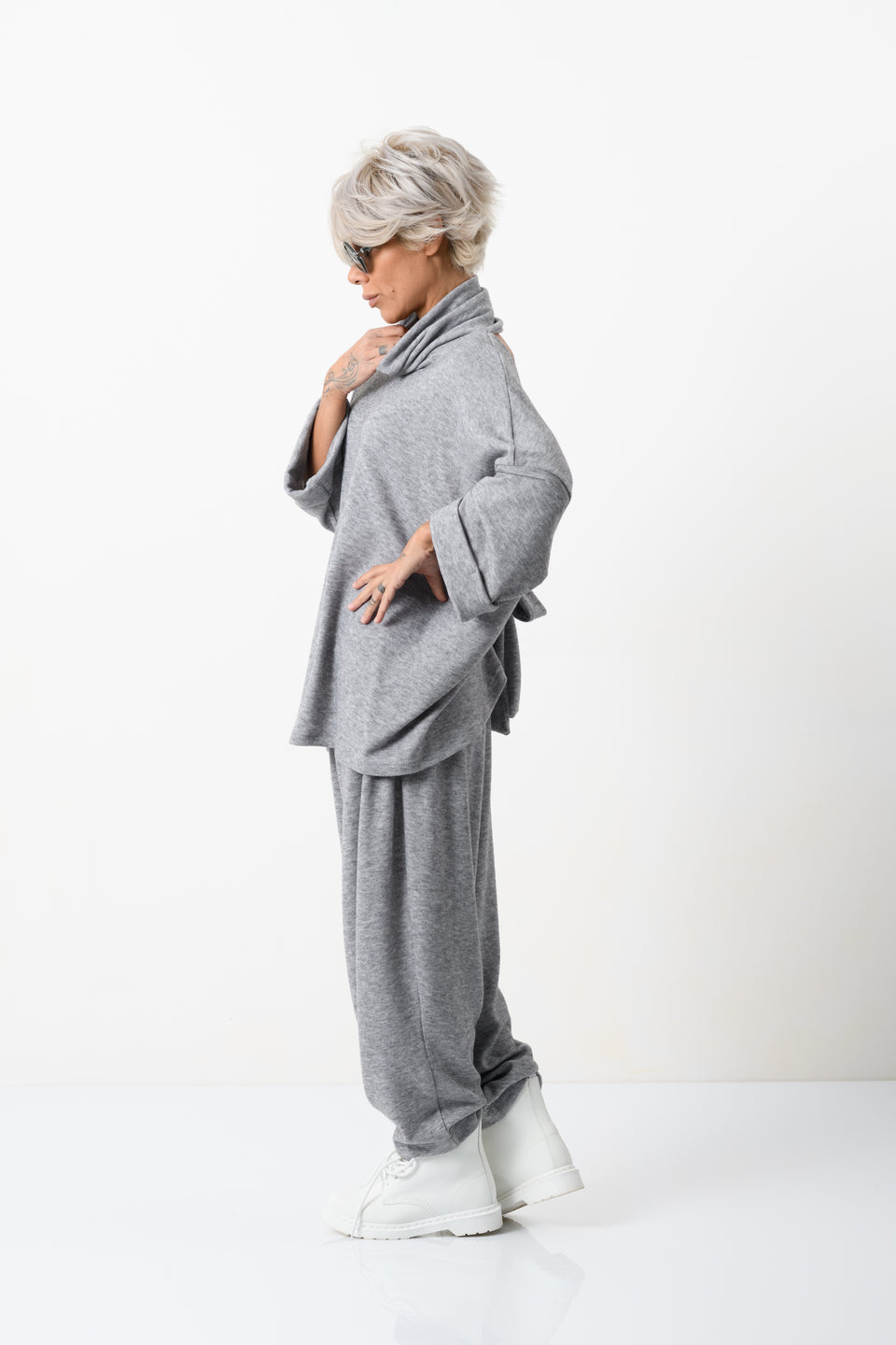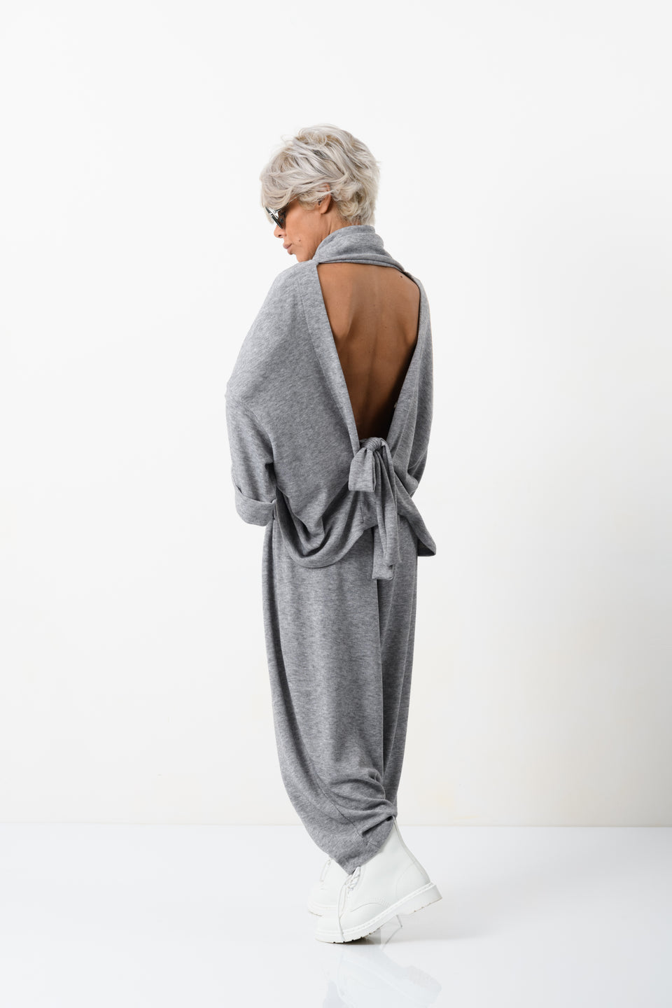 2-PIECE OPEN-BACK LOUNGEWEAR CO-ORD SET IN GREY