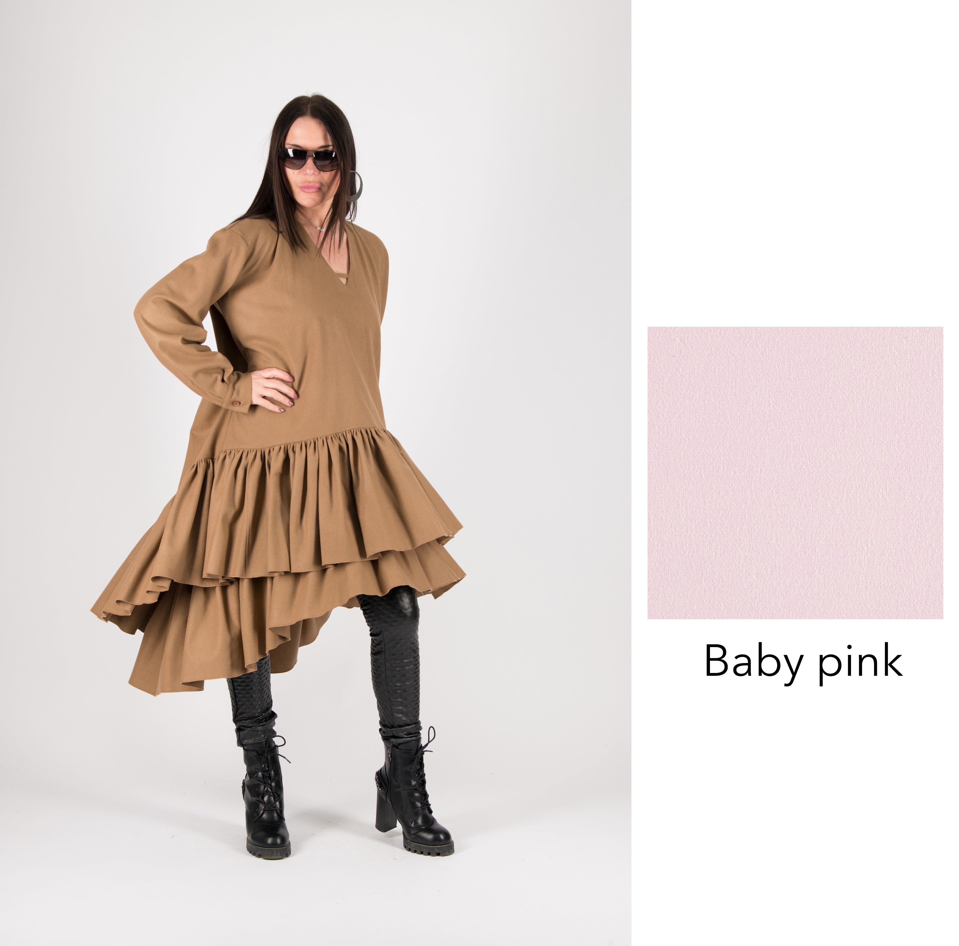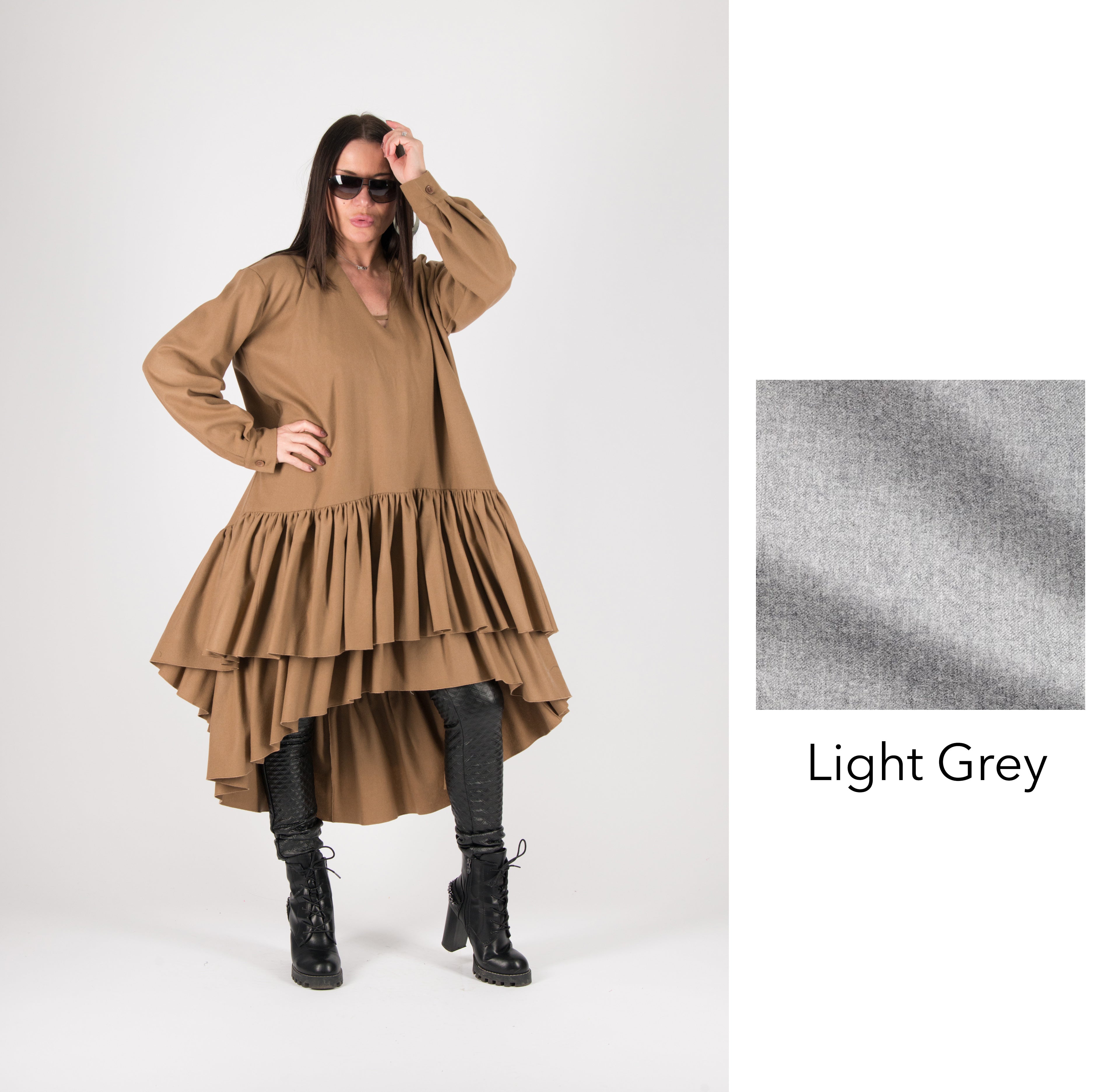 Autumn Winter Camel Cashmere Wool Long Dress with long Sleeves, loose line.
