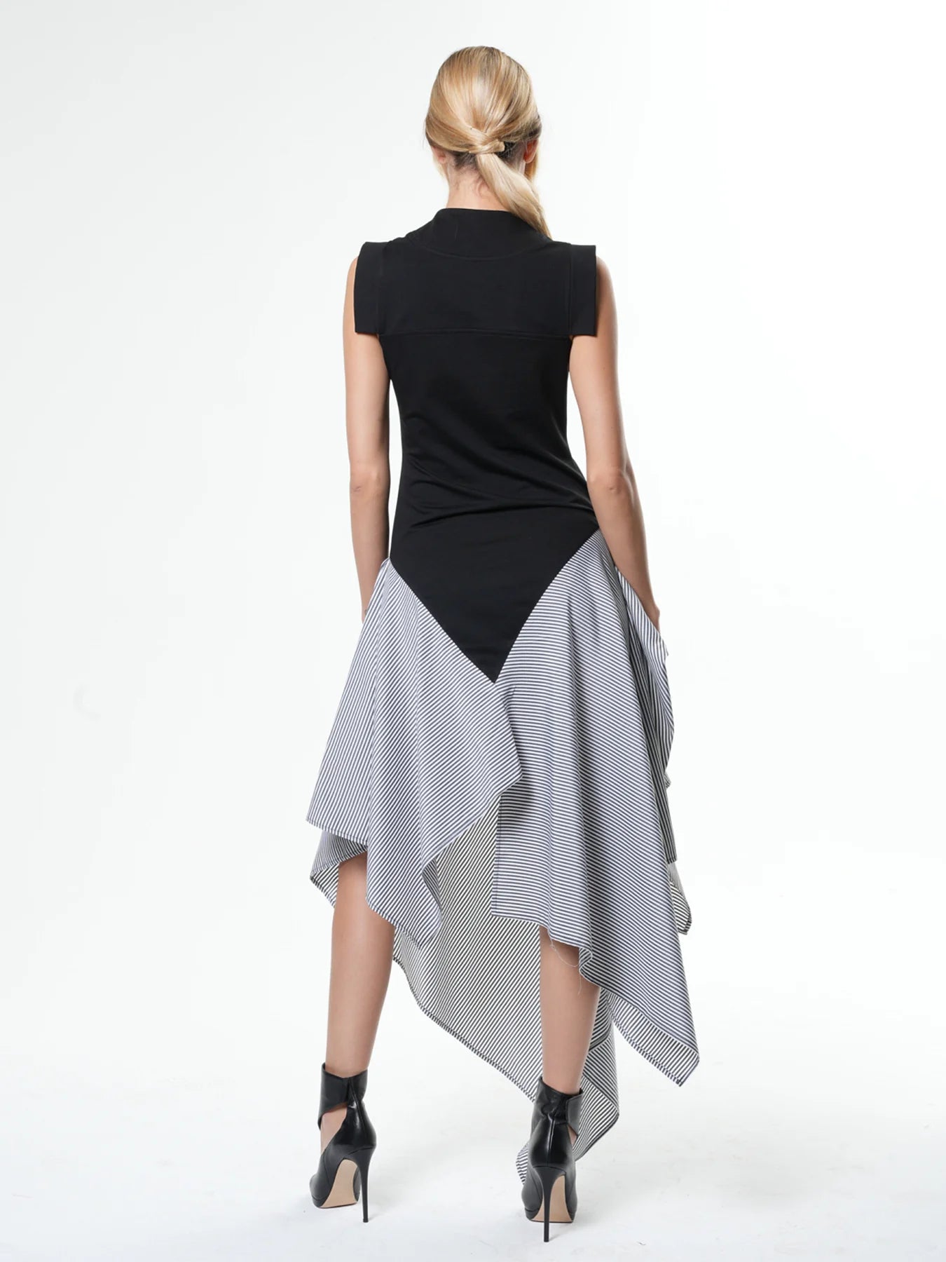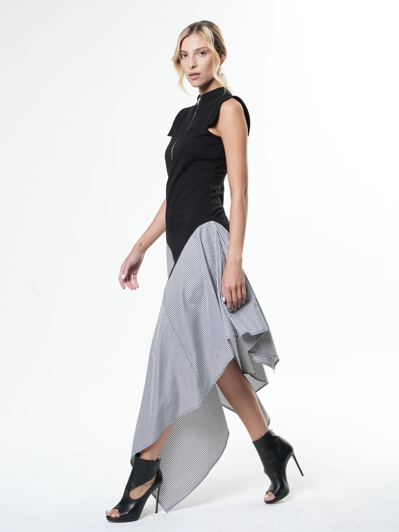 ASYMMETRIC STRIPPED PATTERN DRESS WITH BLACK TOP by Metamorphoza